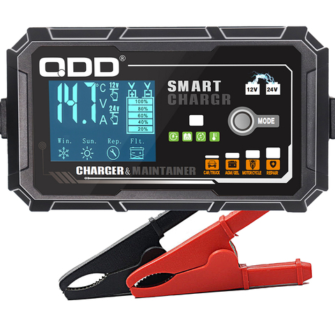 12V 24v智能脉冲维护充电器DC12V 3A 24V 2A-2.5A便携式智能浮动充电器,带夹具连接器